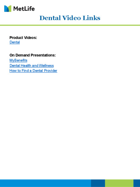 MetLife Low PPO Dental Information Pages