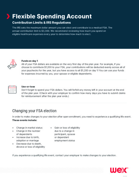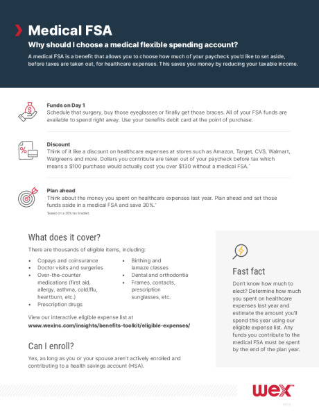 For each of the FSAs you’ve elected, you can set aside funds out of each pay period paycheck before paying income taxes. Then, during the year you can use money from your account(s) to for certain IRS-approved expenses (see www.irs.gov or http://www.wexinc.com/insights/benefits-toolkit/eligible-expenses) for a complete list of qualified expenses).