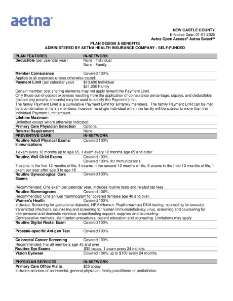 New Castle County will continue to offer medical coverage. The below charts are a brief outline of the plan options.